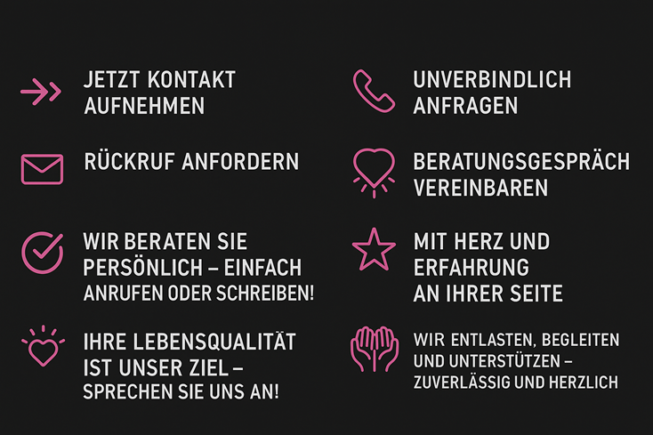 Dann sind Sie bei uns genau richtig! Wir begleiten und unterstützen Sie oder Ihre Angehörigen ganz individuell und bedarfsgerecht.